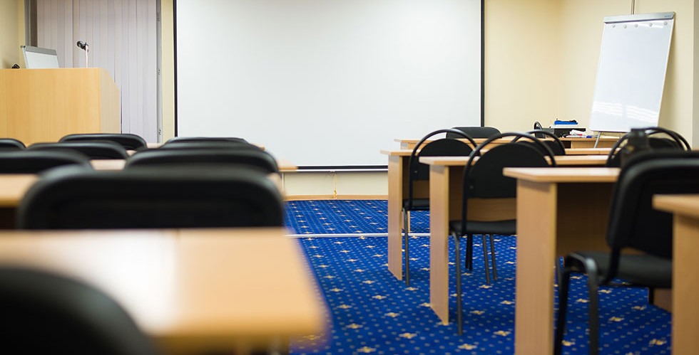 Здесь есть все необходимое оборудование: аудио-акустическая система, микрофоны, экран и проектор, флипчарты.